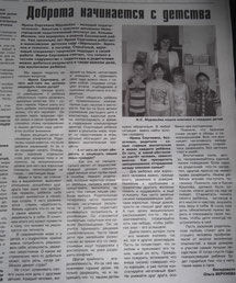 Статья в "Сосновском вестнике" от 4 июня 2014 года "Доброта начинается с детства"