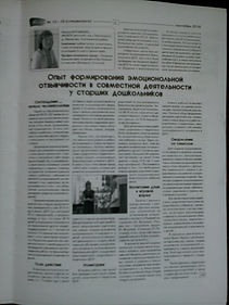 "Опыт формирования эмоциональной отзывчивости в совместной деятельности у старших дошкольников" статья в газете "Школа" Нижегородского института развития образования № 15-16 (465-466) от сентября 2016 года